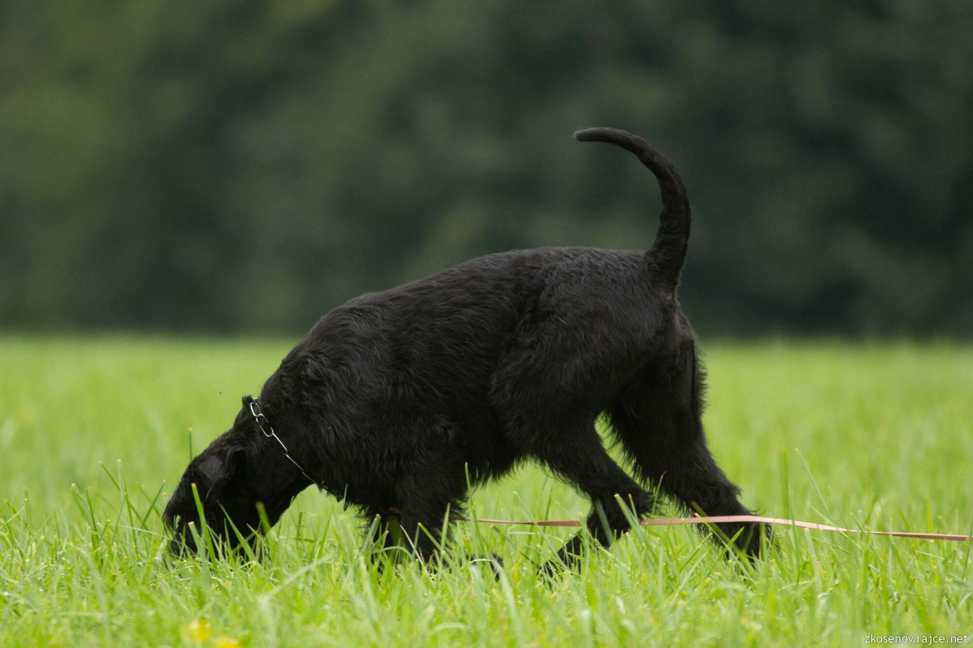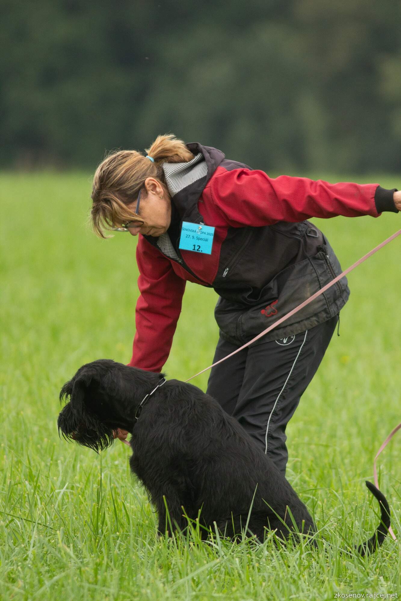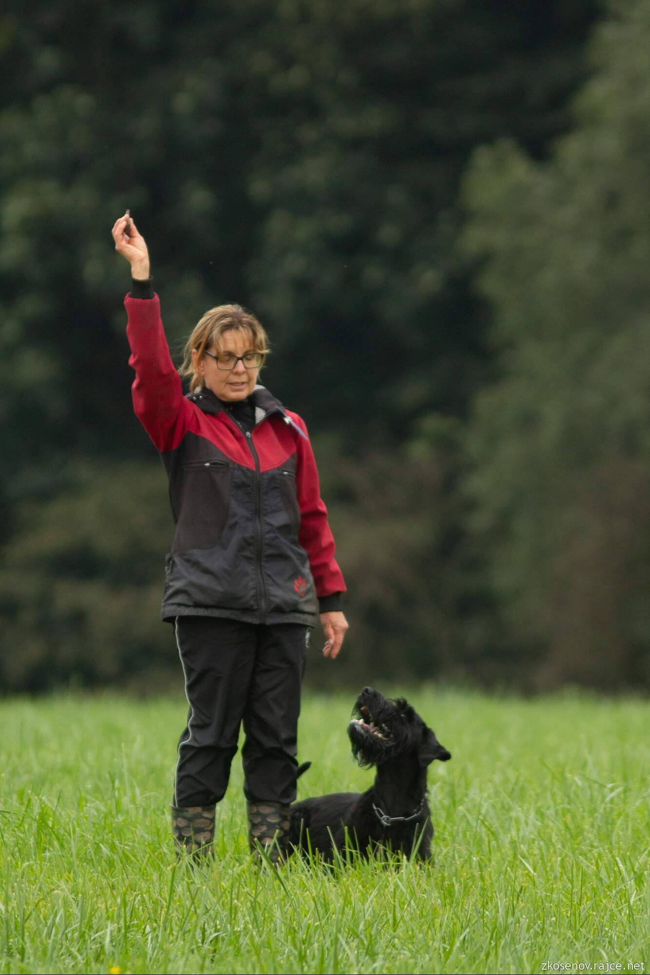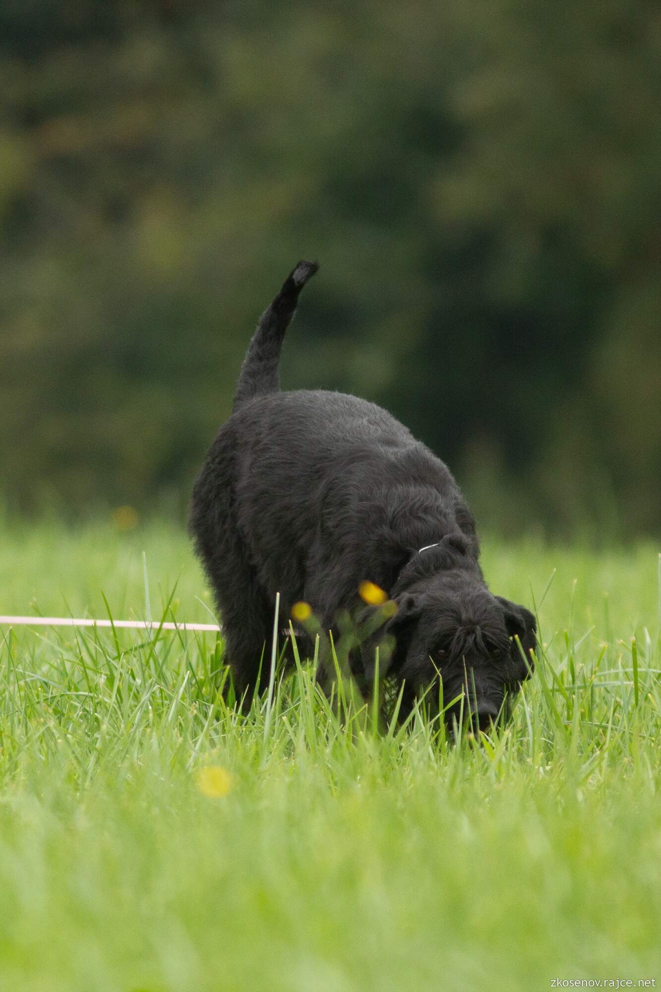 Ria (Charisma Radinie) poprvé v životě startovala mezi stopařskou elitou a hned všem doslova vytřela zrak! Nejen že vybojovala vítězství, ale porazila i taková stopařská esa, jako je Jirka Basista nebo Jaroslav Urbánek. Na fenku, která má zatím složenou z vyšších stopařských zkoušek jen IFH 1, to bylo parádní entrée. Jsem neskutečně pyšná, jak skvělou holčičku mám!!! Pro představu – speciální stopa byla 700 kroků dlouhá, cizí, 3 hodiny stará, 2x křížená, měla 6 úseků, oblouk, dva ostré lomy a 6 předmětů (z toho 1 netradiční – tužka). Riunka ji dokázala udělat za 98 bodů.